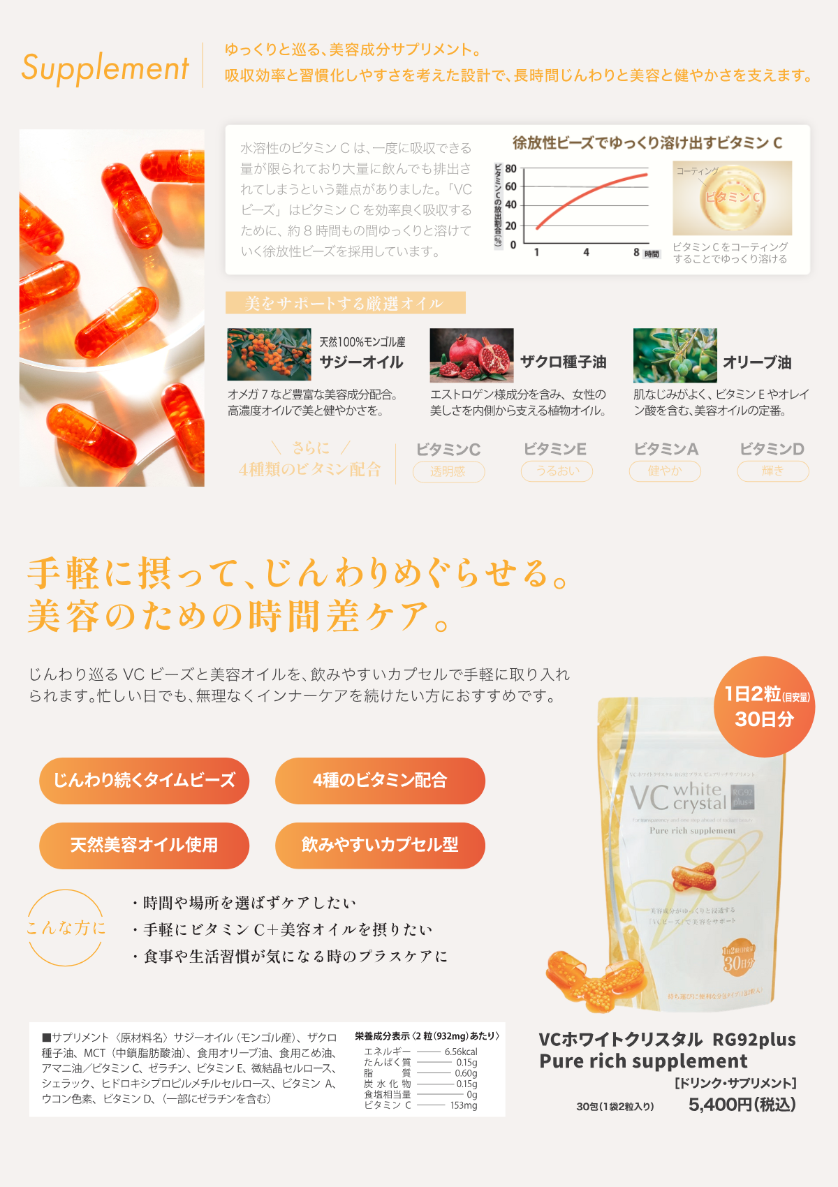 美容成分がゆっくりと浸透する「VCビーズ」